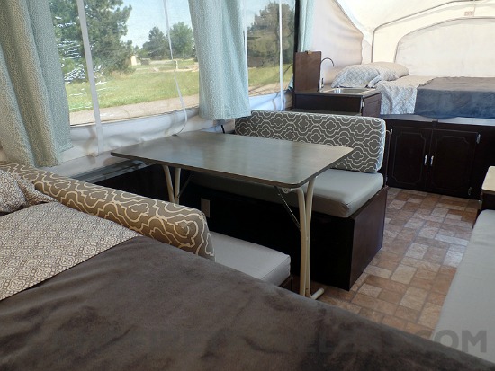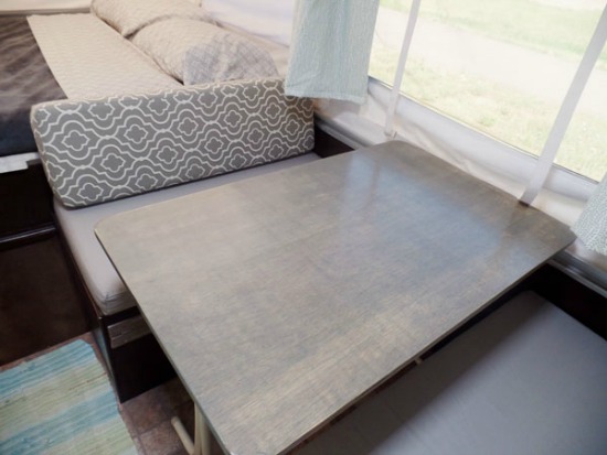 I’m almost finished with upgrades to a 2004 Coleman Utah and would love to send pictures when it’s complete. The color scheme is very similar to Mandy’s except we painted our cabinets gray and are planning to install gray wood-look vinyl planking over the existing linoleum the next time we bring the pop-up home from storage. We can only keep it in our driveway for 48 hours twice a month, so we really have to be efficient whenever we do!